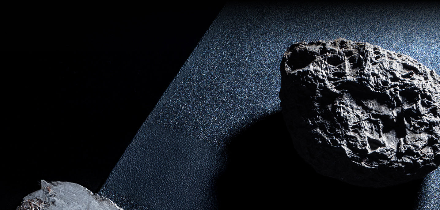 When cut open, it reveals a smooth, silver surface with unique patterns, formed as iron-nickel cooled over millions of years in space.