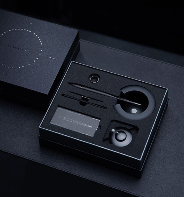 Each Hoverpen Interstellar Meteorite Edition features a hand-inlaid fragment of this rare material, embedded by master artisans and framed with an 18K gold-plated ring.