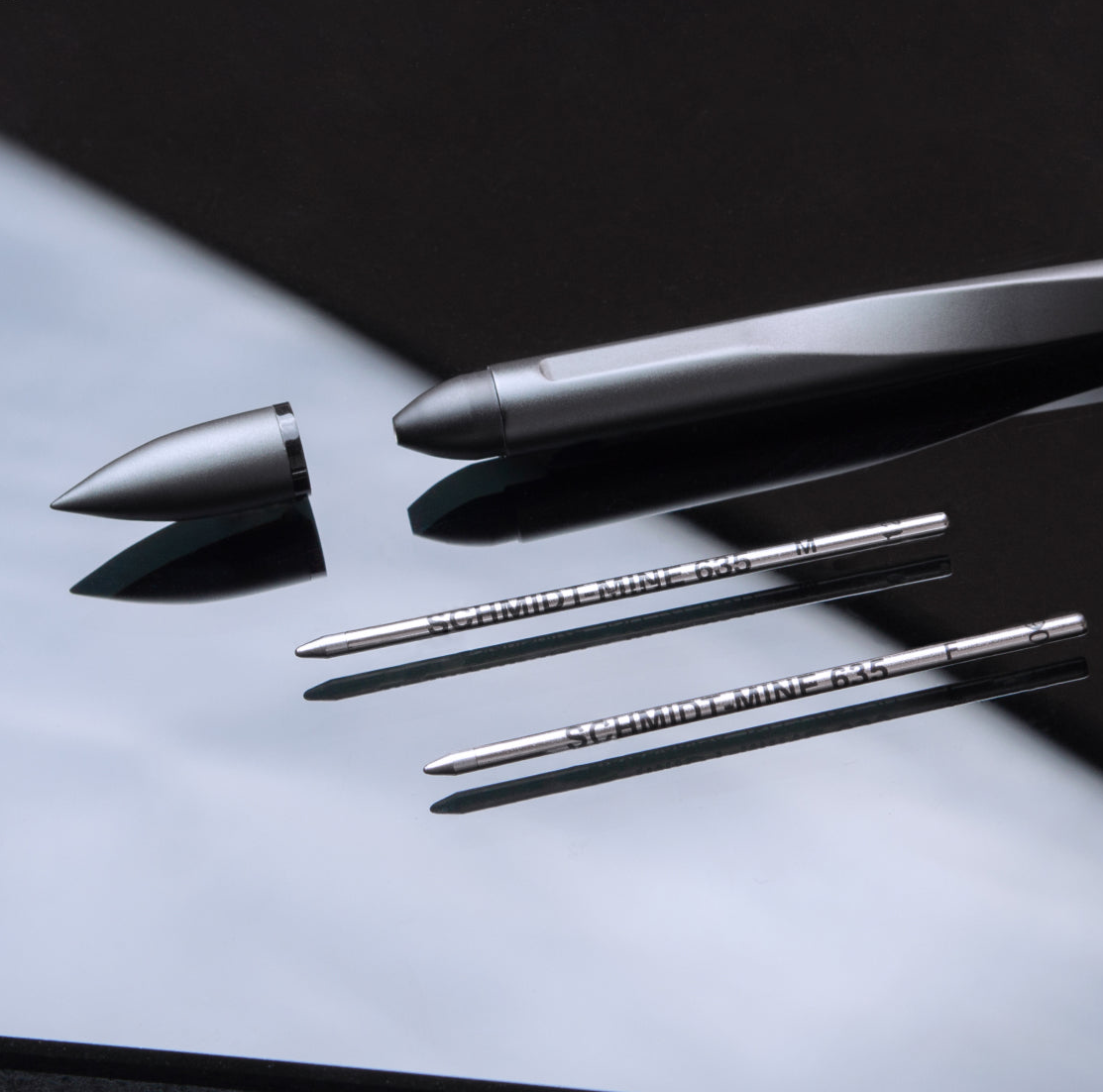 The Hoverpen features Schmidt cartridges, the German-engineered luxury standard in ballpoint pens.