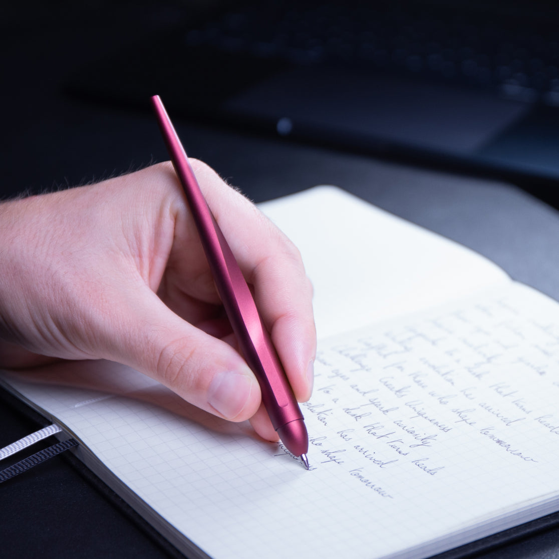 Crafted from aircraft-grade aluminum, the Hoverpen hovers without electricity at an elegant 23.5-degree angle—making it easy to pick it up and write things down.